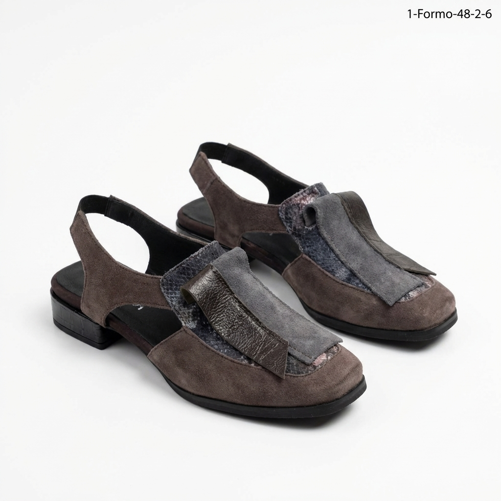 Handmade from premium natural leather, this slingback design features a distinctive layered front detail that adds depth, texture, and personality to every step. The open-back silhouette combined with a structured low heel delivers breathability, comfort, and elegance all in one.