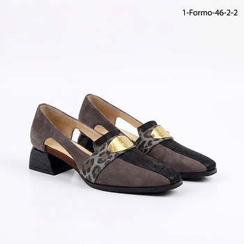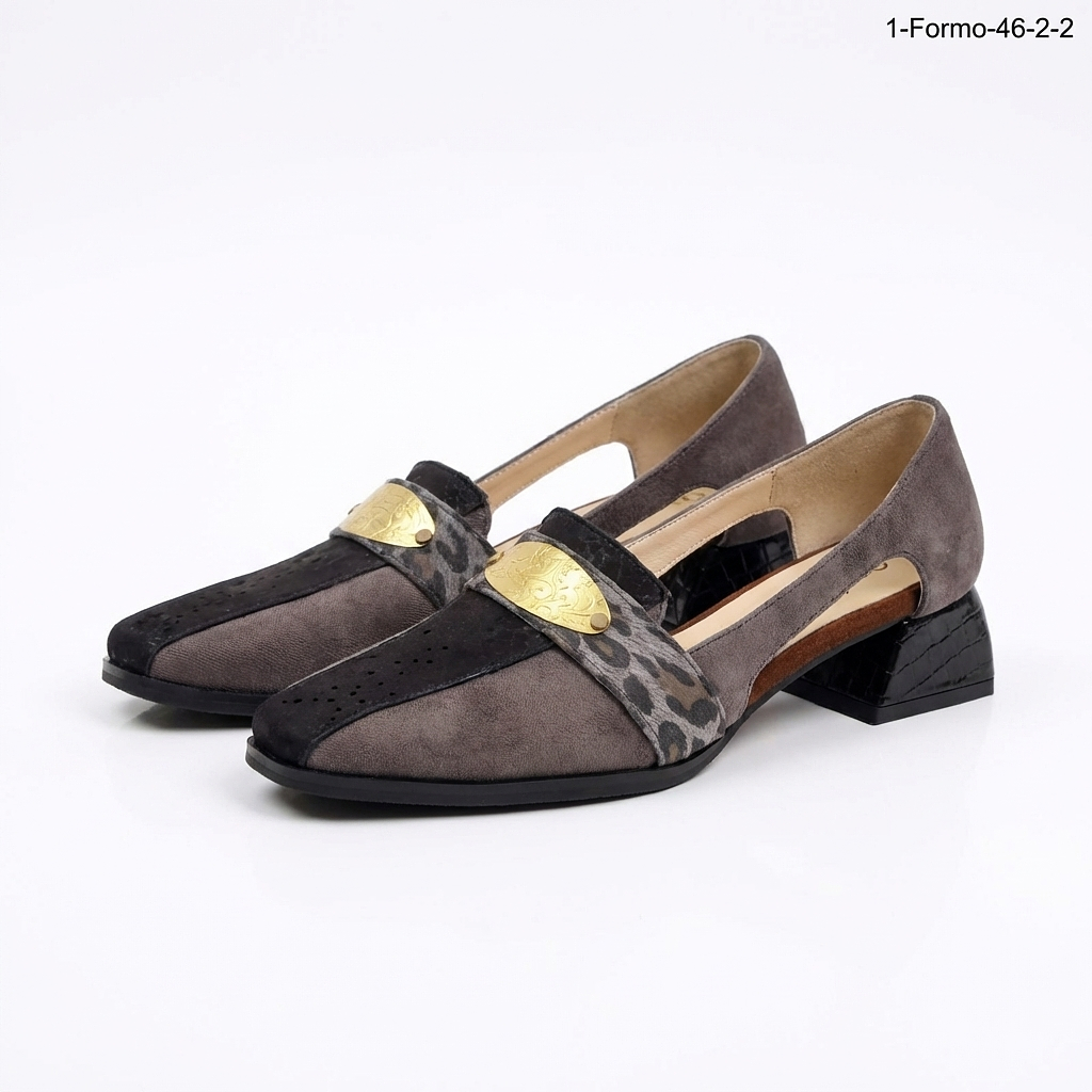 Handcrafted from premium natural leather, this model blends unique textures and rich color combinations, finished with a signature gold accent detail that adds a touch of luxury. The structured silhouette and low sculpted heel provide both style and everyday comfort, making it perfect for effortless elegance from day to night.
